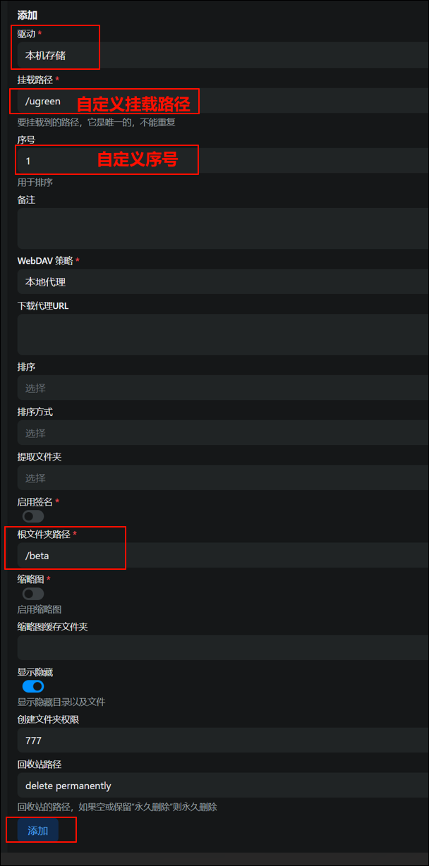 /百度网盘方便区分,确认配置无误后点击“添加”挂载完成。