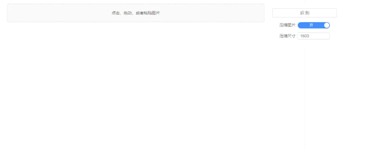 进去界面很简单,拖拽、粘贴或者上传你需要进行文字识别的图片,这里有压缩图片的选项但是建议关闭。不开压缩可以提高识别准确率。